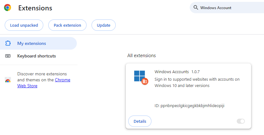 In the past to autologin to any SSO intergrate apps to Microsoft for Google Chrome, you would need to use an "Windows Account" for Google Extensions to work.